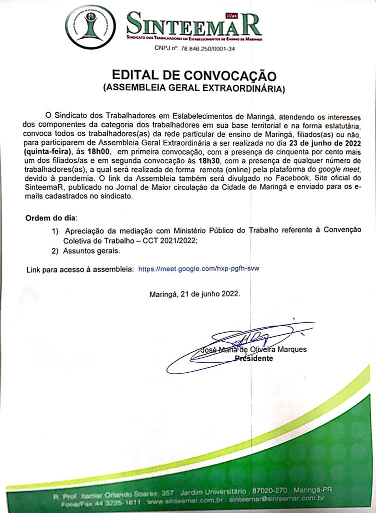 Assembleia SINEPE segunda-feira 31 de outubro de 2022