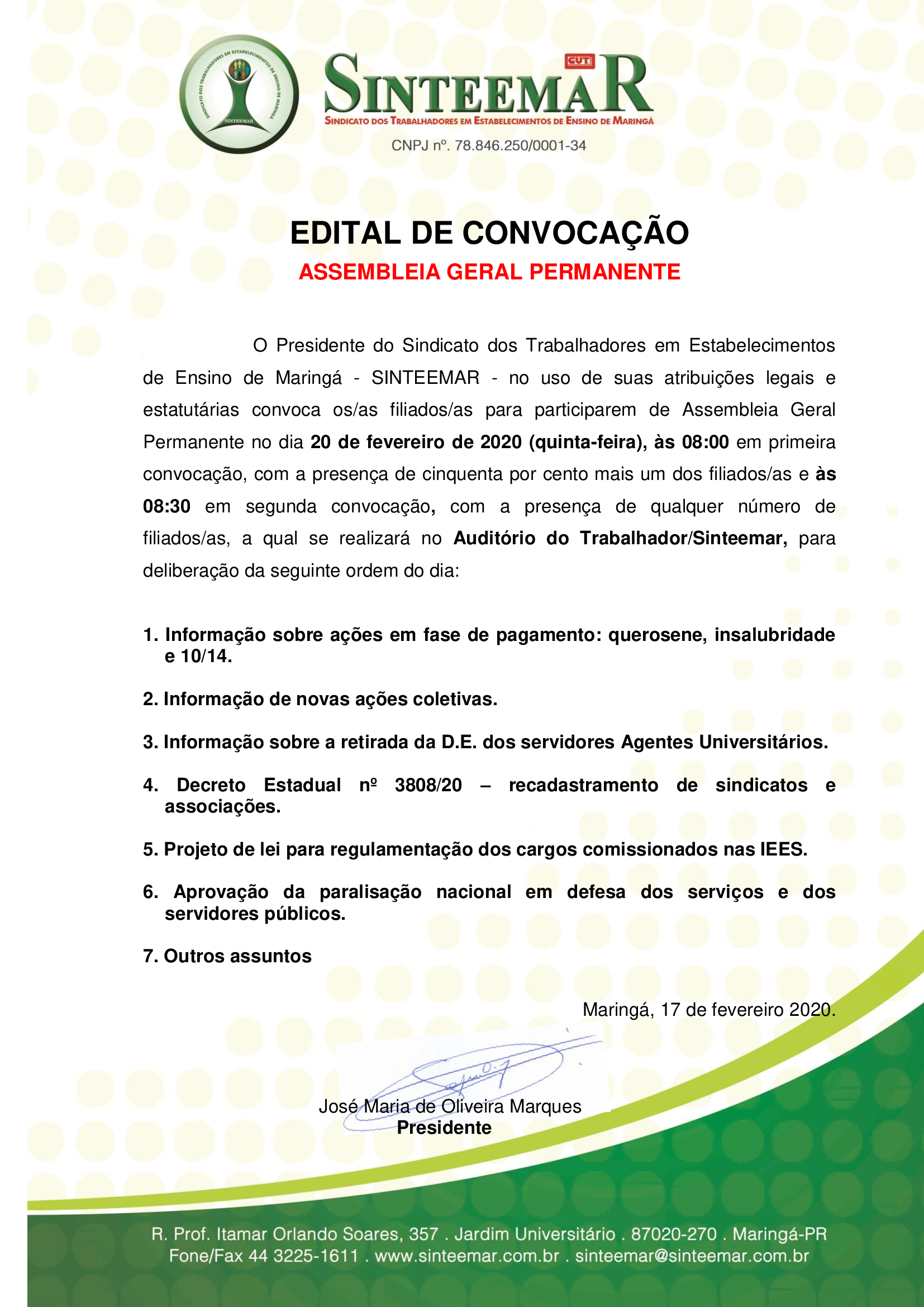 Nesta quinta-feira (11/03) tem Assembleia do Sinteemar